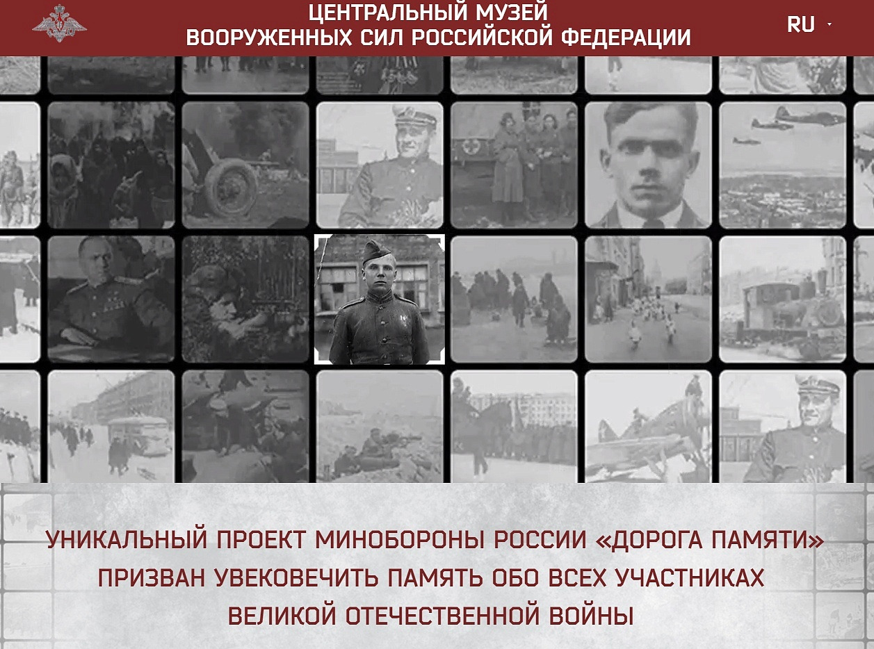 В год 75-летия Великой Победы Министерство обороны Российской Федерации реализует мультимедийный проект «Дорога памяти» Грандиозный проект объединит десятки миллионов фотографий фронтовиков и работников оборонных предприятий, партизан и жителей блокадного Ленинграда, сотрудников учреждений культуры и военных корреспондентов всех, кто самоотверженно сражался и трудился в огненные годы Великой Отечественной войны, отстаивая родную землю от фашистских полчищ.