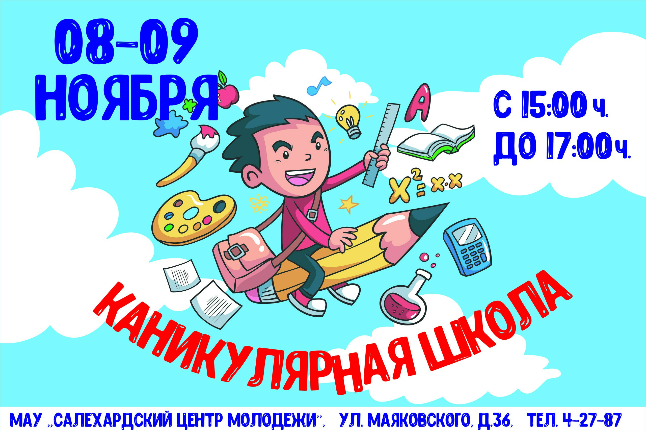 8-9 ноября 2017 года с 15:00 до 17:00 на базе МАУ «Салехардский центр молодежи» по адресу Маяковского,36, специалистами «СЦМ» будет организована каникулярная школа «Экспресс курс «Школа Вожатых»» для молодежи города Салехард.