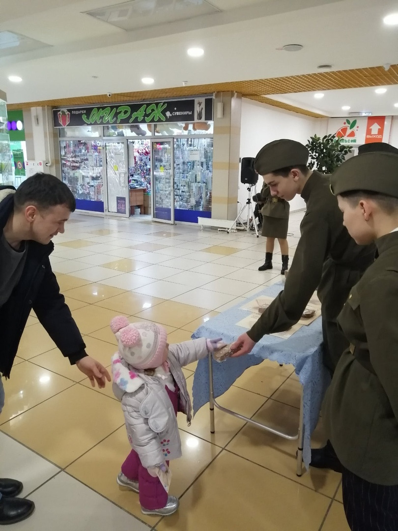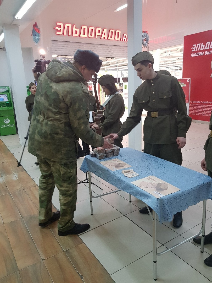 Памятная акция «Блокадный хлеб» проходит в эти дни по всей России. Она посвящена памяти людей, более двух лет живших и сражавшихся в осажденном Ленинграде. 27 января 1944 года была снята блокада Ленинграда. Все мы знаем, как тяжело было людям, находившимся в блокадном городе. С каждым днем в городе таяли запасы продовольствия. Были сокращены нормы. Рабочие получали в день хлеба по 250 грамм, а служащие и дети по 125 грамм. Муки в этом хлебе почти не было, его выпекали из отраслей, мякоти, целлюлозы. Хлеб был почти единственным питанием ленинградцев. За время блокады города в нем погибло до полутора миллионов человек, большинство из них - от голода. В Салехарде «Волонтеры Победы» провели акцию «Блокадный хлеб» в ТЦ «Дискаунтер» и ТЦ «Апельсин». Ребята раздавали посетителям информационные листы и хлеб, по весу равный суточной норме тех времен — ровно 125 граммов. В поддержку акции студенты Ямальского многопрофильного колледжа выступили для жителей и гостей акции с театрализованной постановкой «Рассказы об ужасах блокады». Многие участники акции не смогли сдержать слёз.