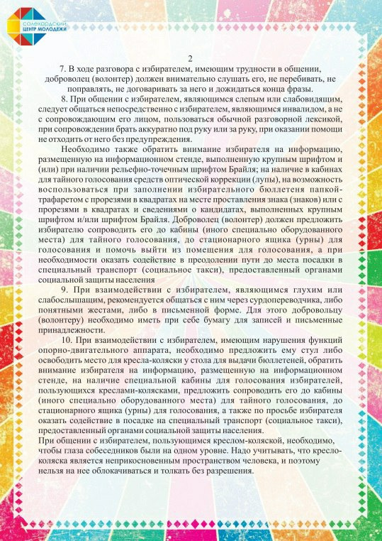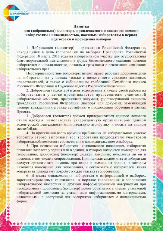 По завершению встречи волонтерам розданы памятки для использования в работе с инвалидами, а также для оказания содействия гражданам пожилого возраста во время избирательной кампании в день голосования.