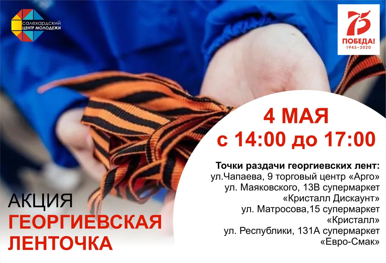 В преддверии годовщины со дня Победы в Великой Отечественной войне в Салехарде, как и по всей стране проводится ежегодная патриотическая акция Георгиевская ленточка.