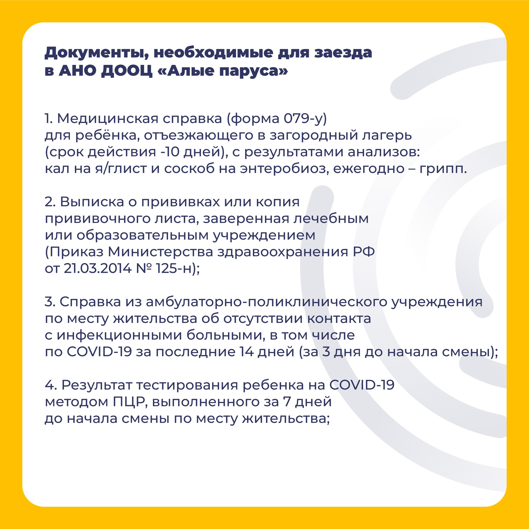 Документы, необходимые для заезда в АНО ДООЦ «Алые паруса»